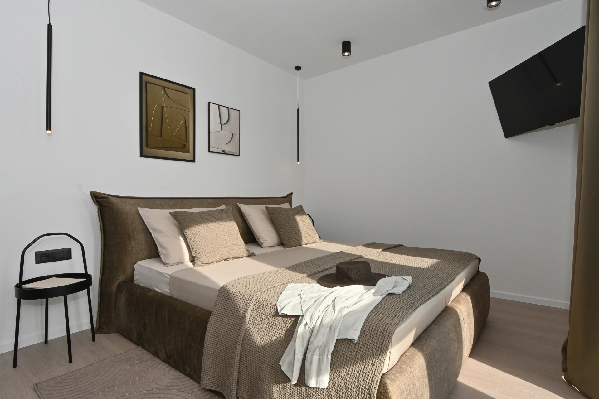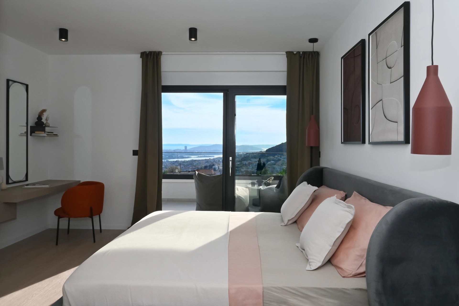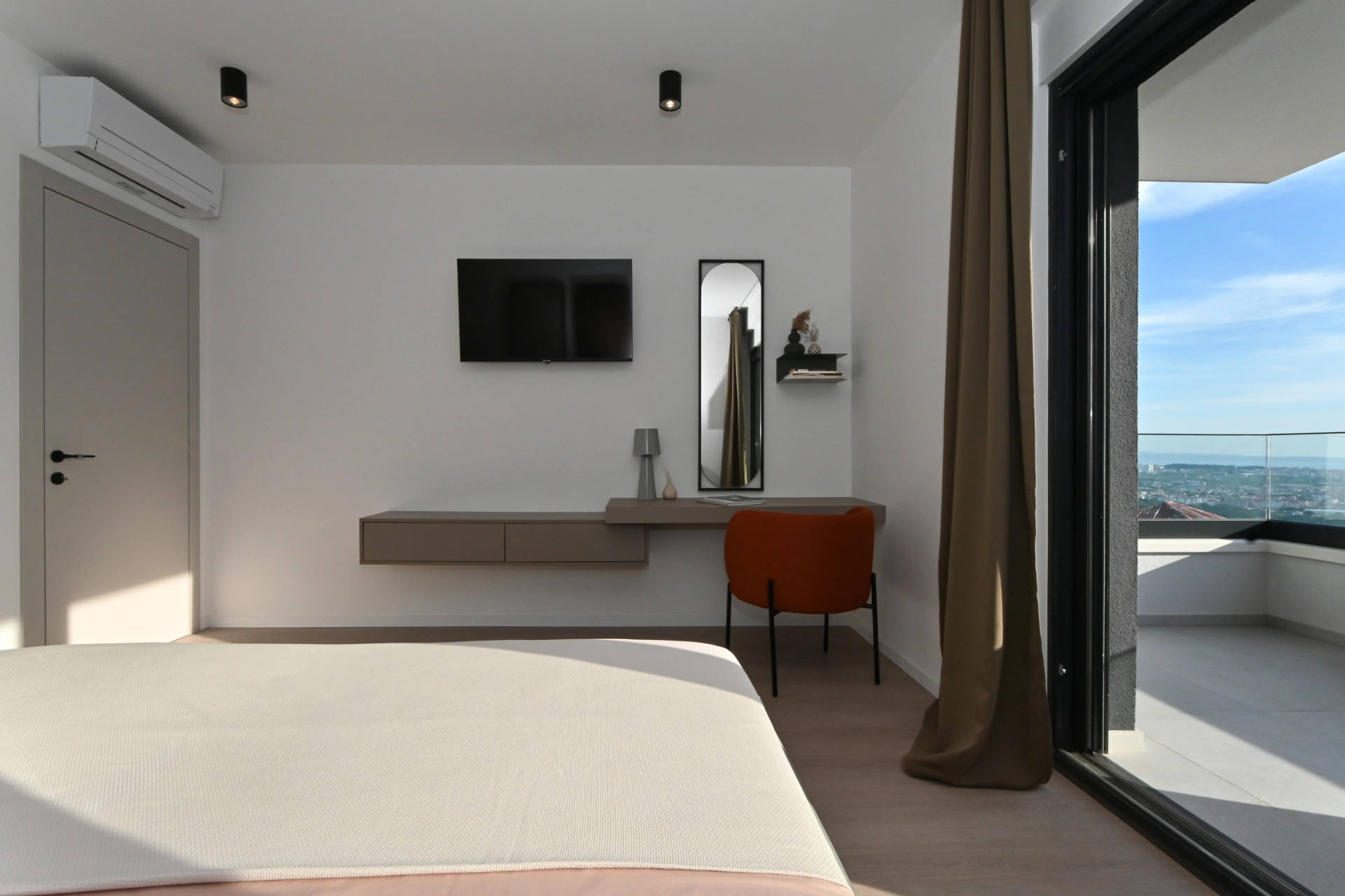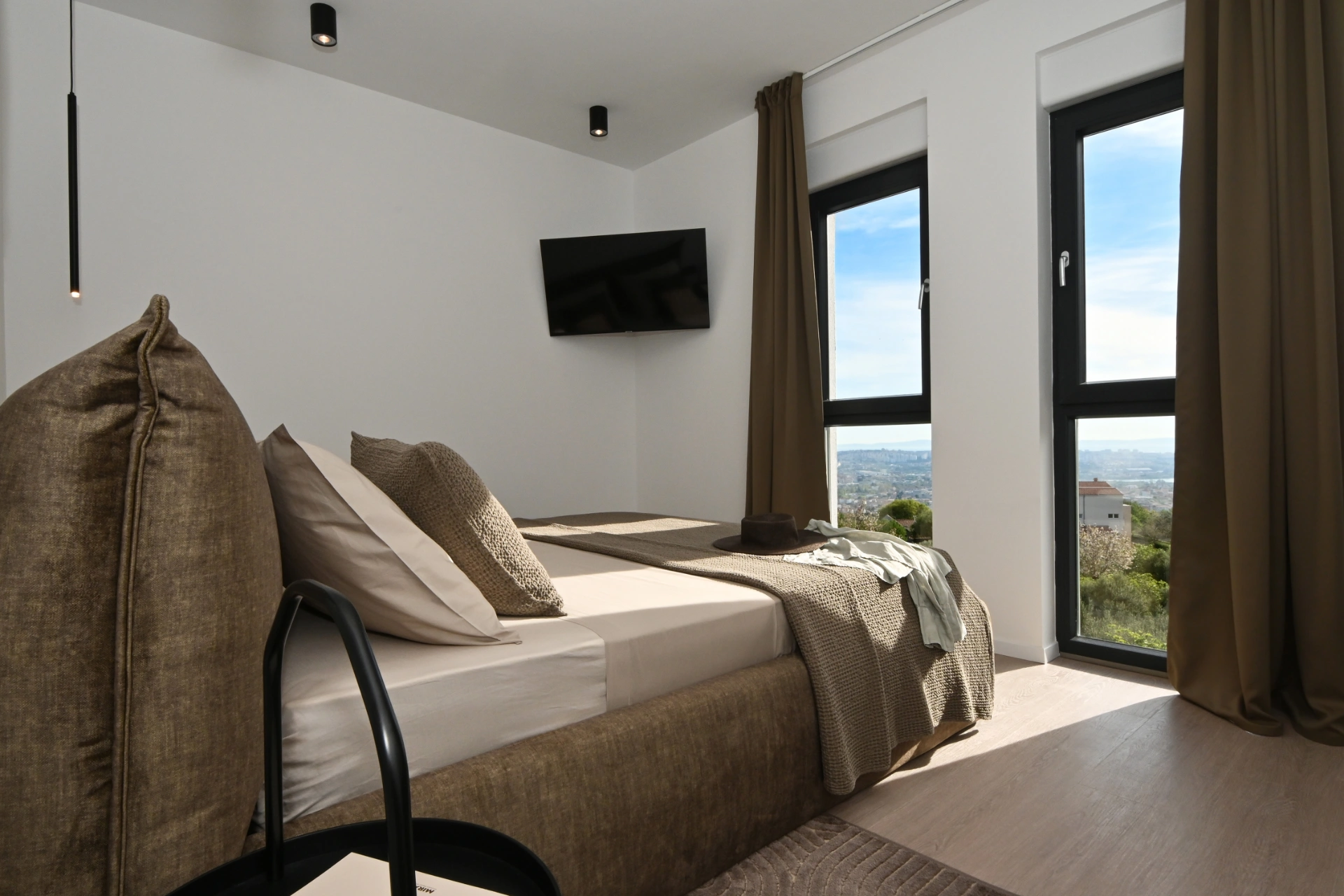 The first floor consists of three bedrooms, each with a panoramic view. The master bedroom has its own bathroom and terrace. Imagine waking up to a panoramic view of Split and its islands right from your bed! All bedrooms are furnished with carefully selected details, natural materials and linen covers, feature TV and air conditioning.