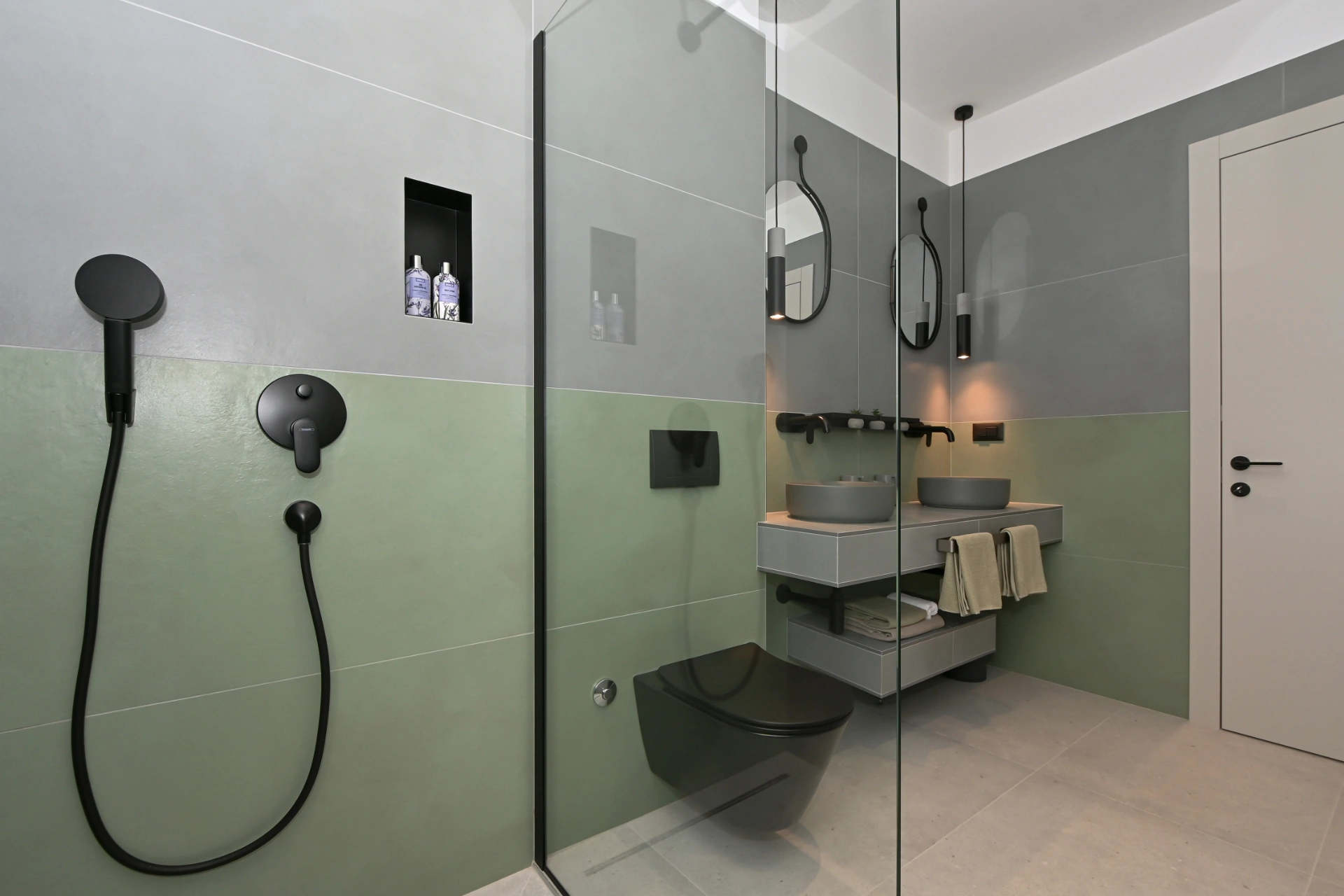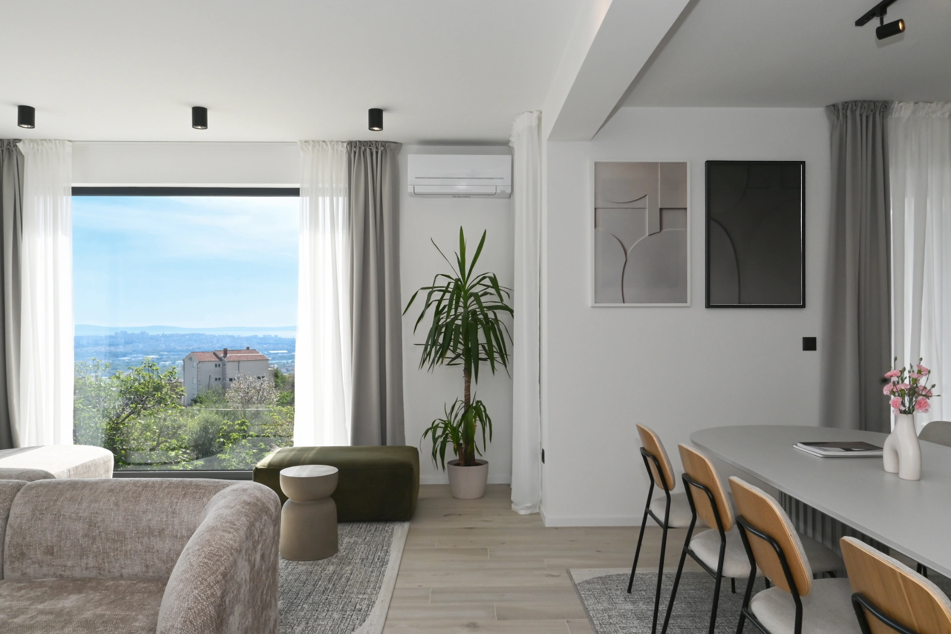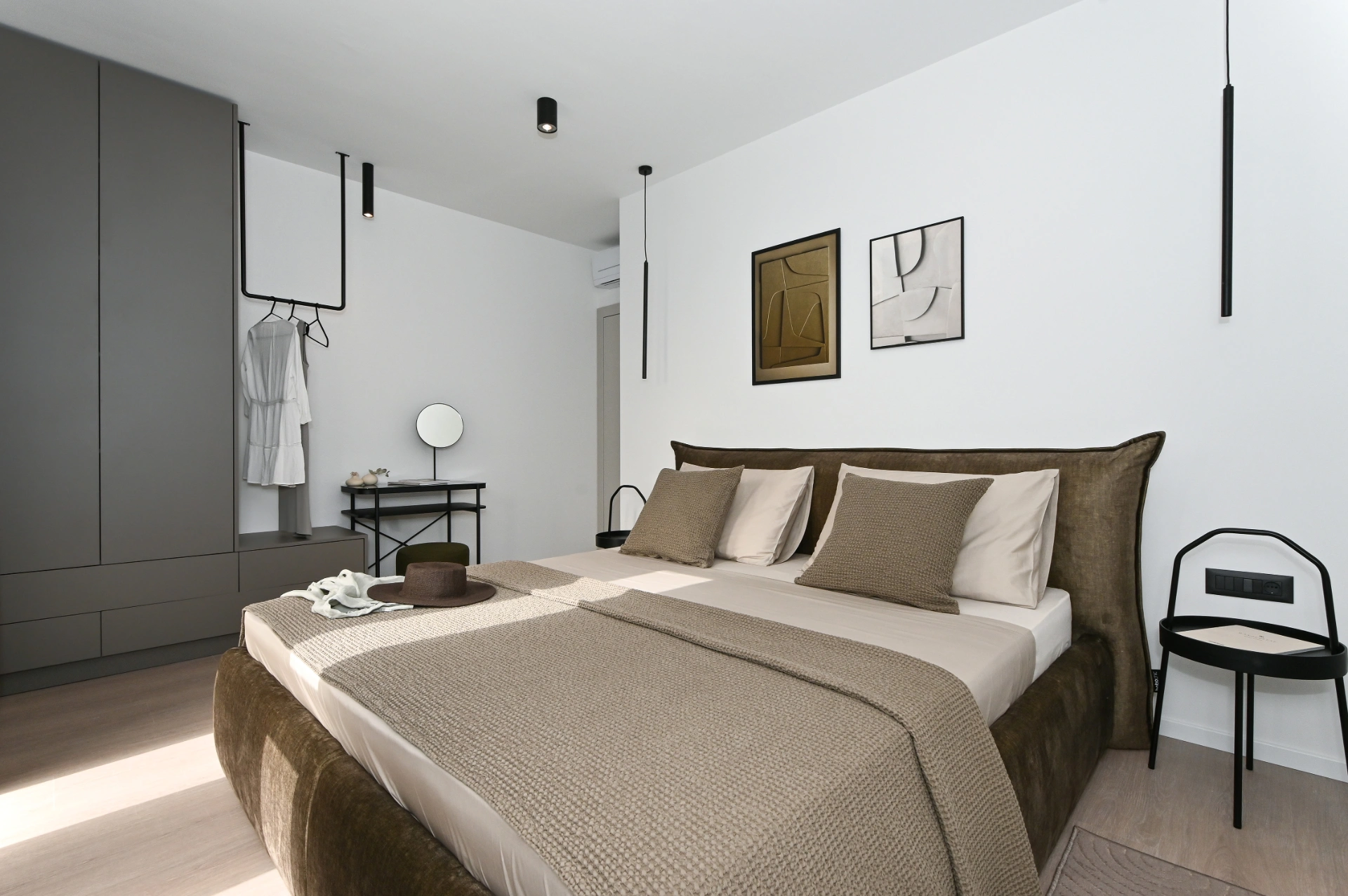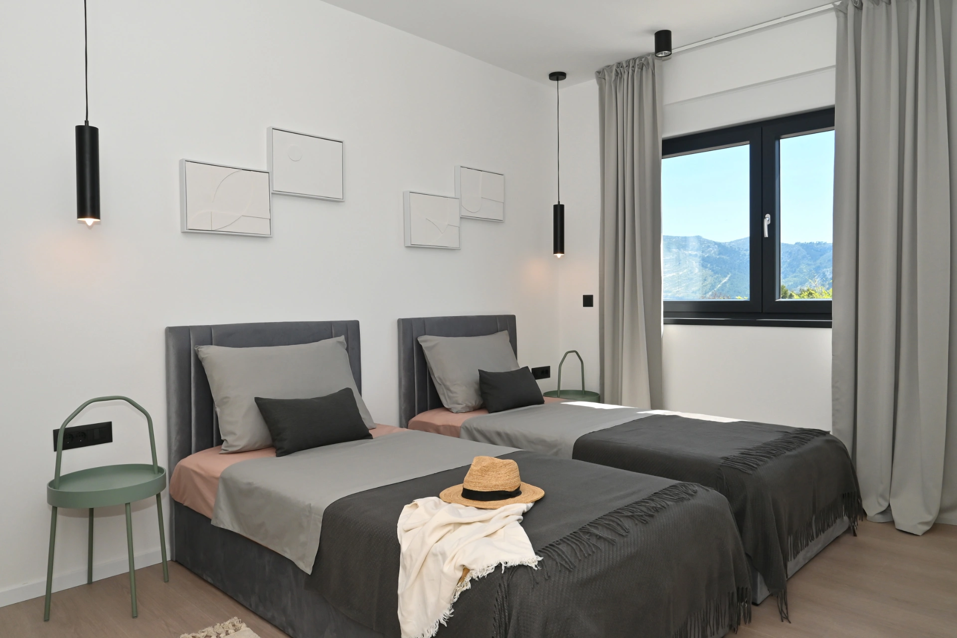 The first floor consists of three bedrooms, each with a panoramic view. The master bedroom has its own bathroom and terrace. Imagine waking up to a panoramic view of Split and its islands right from your bed! All bedrooms are furnished with carefully selected details, natural materials and linen covers, feature TV and air conditioning.