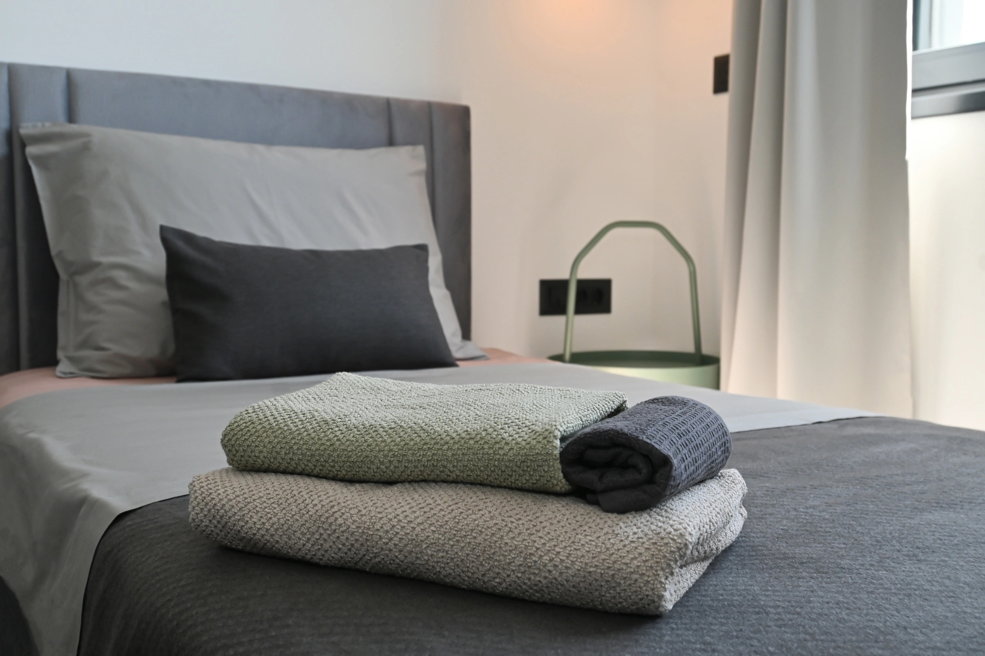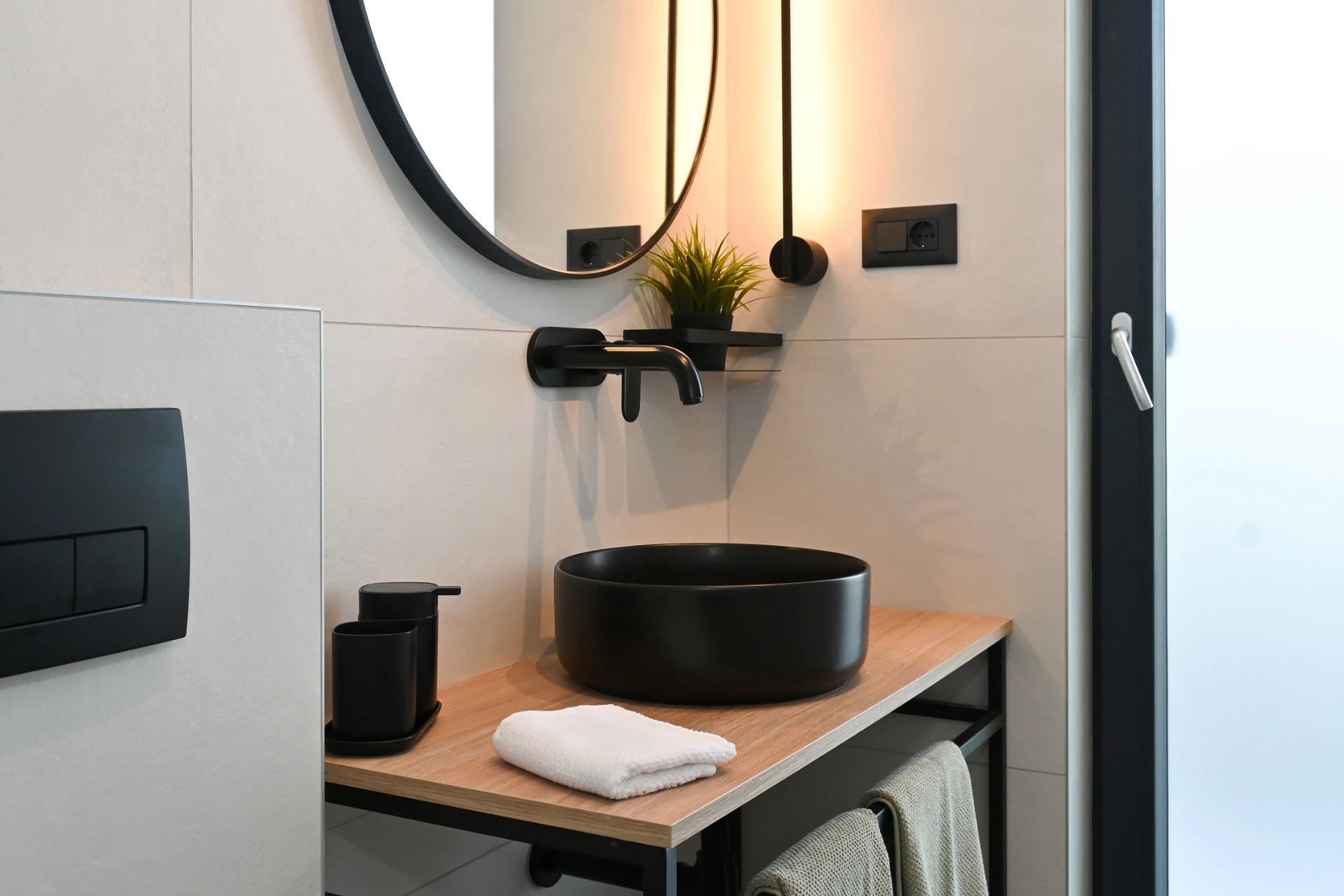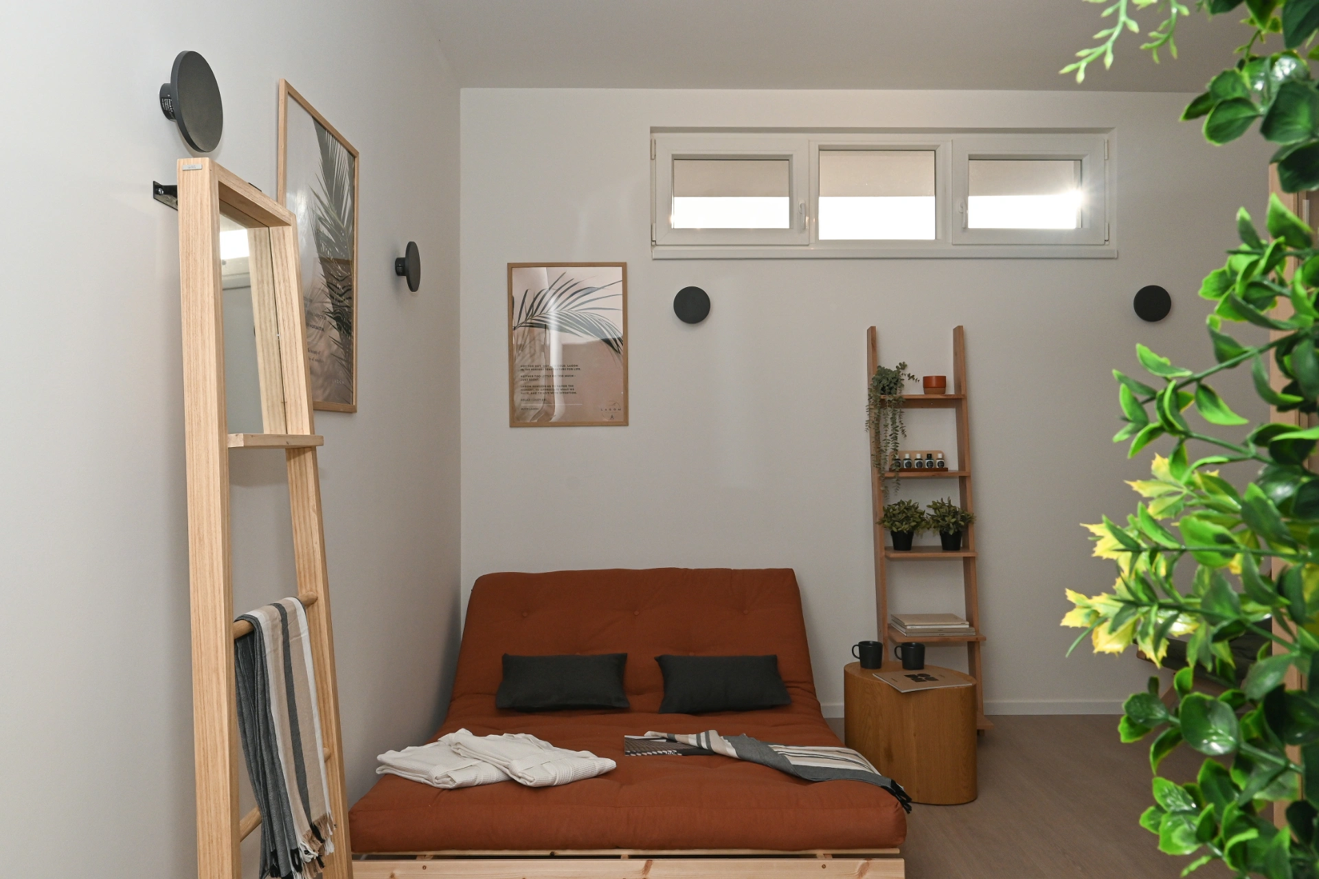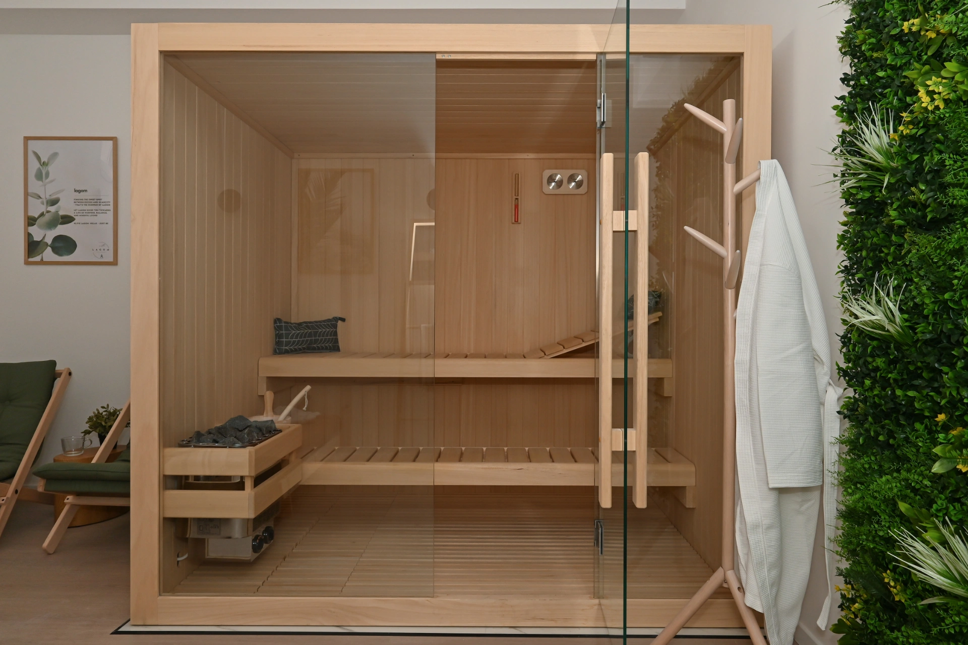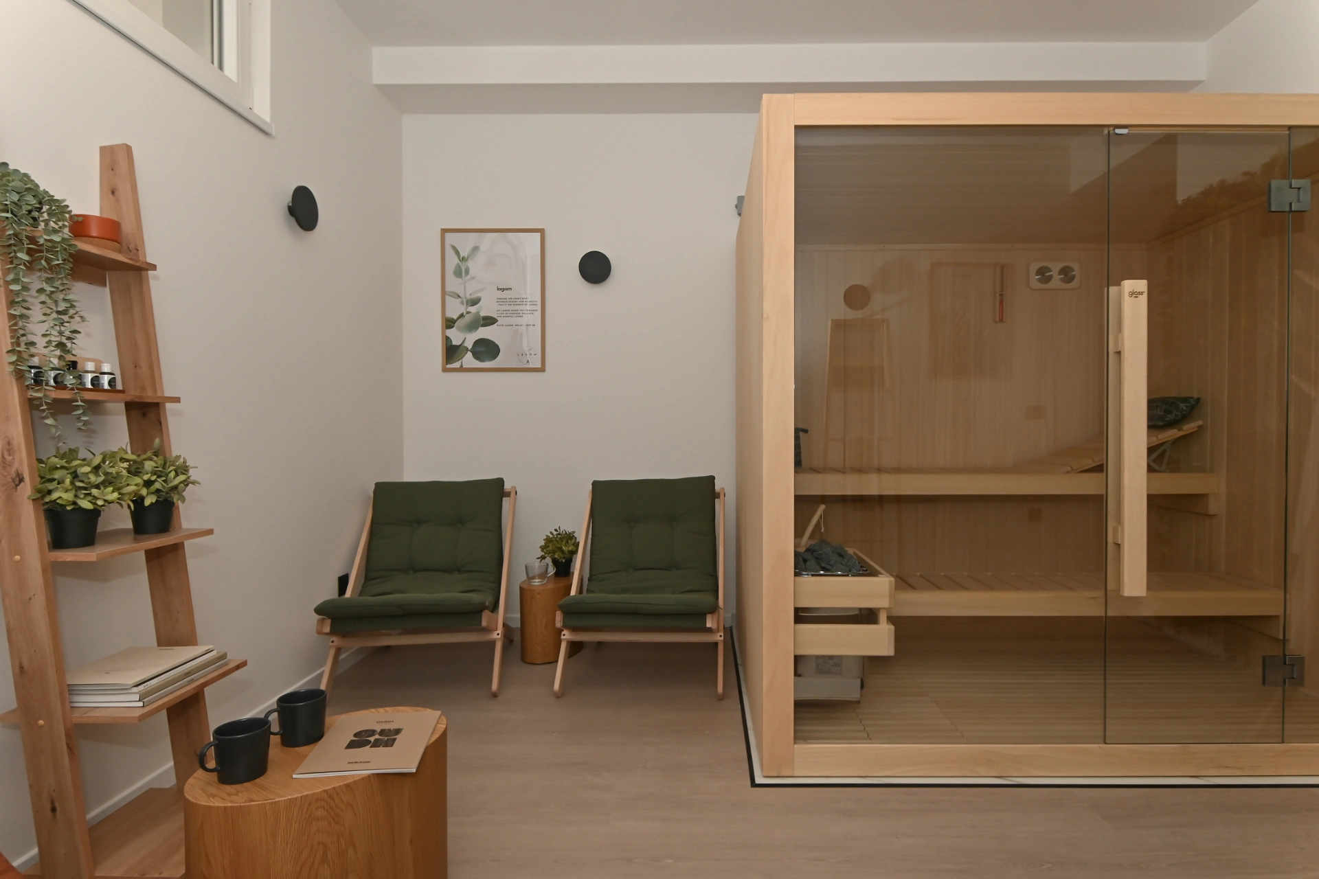 We’ve also taken care of the wellness zone, equipped with an organic Finnish sauna and futon furniture for maximum comfort during relaxation. The wellness room is decorated with earthy colors – dark red combined with green and wooden tones, creating a sense of connection to the natural surroundings where you can unwind and reconnect with yourself. We truly want you to experience Lagom living – balanced living and enjoying the moment!